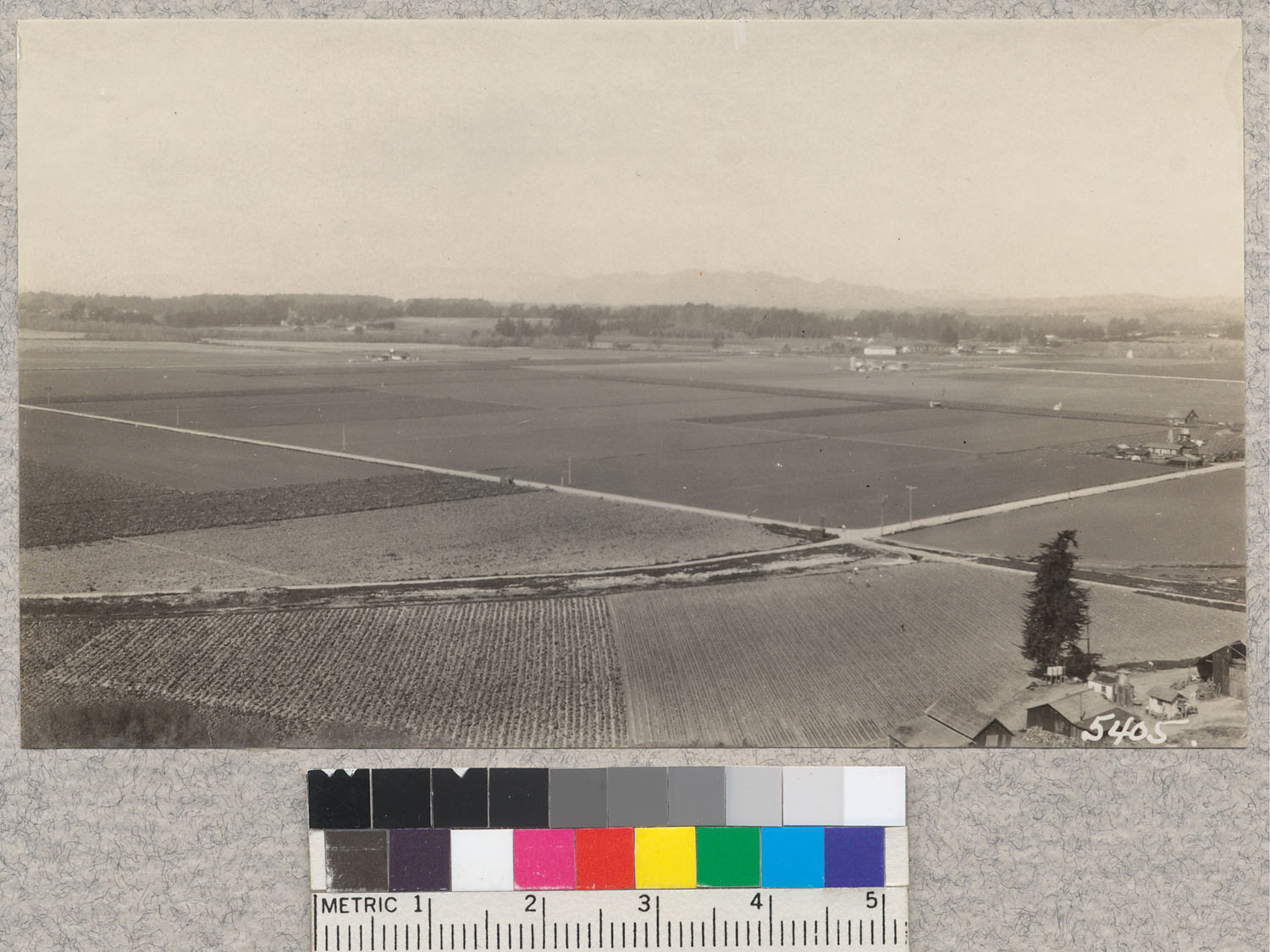 View from new roadway along the edge of the Los Berros Mesa looking towards the north over the fertile agricultural valley. The mesa is very sandy and unproductive land. San Luis Obispo County, Metcalf.